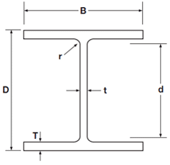 Weight [kg/m]Height [mm]Width [mm]Web thickess [mm]Flange thickess [mm]Depth between fillets